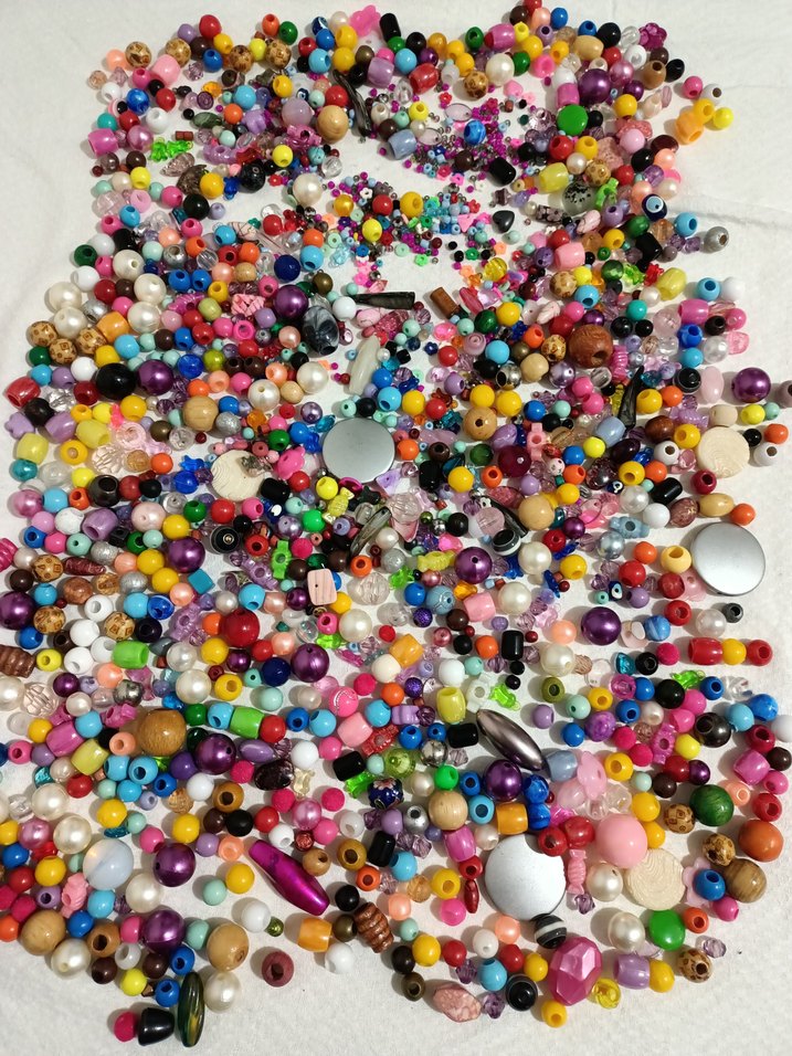 Farklı şekil ve boyutlarda renkli boncuk çeşitleri, yaratıcı el işleri ve takı yapımı için uygundur. Ahşap, plastik ve cam. Yaklaşık 500 gr.