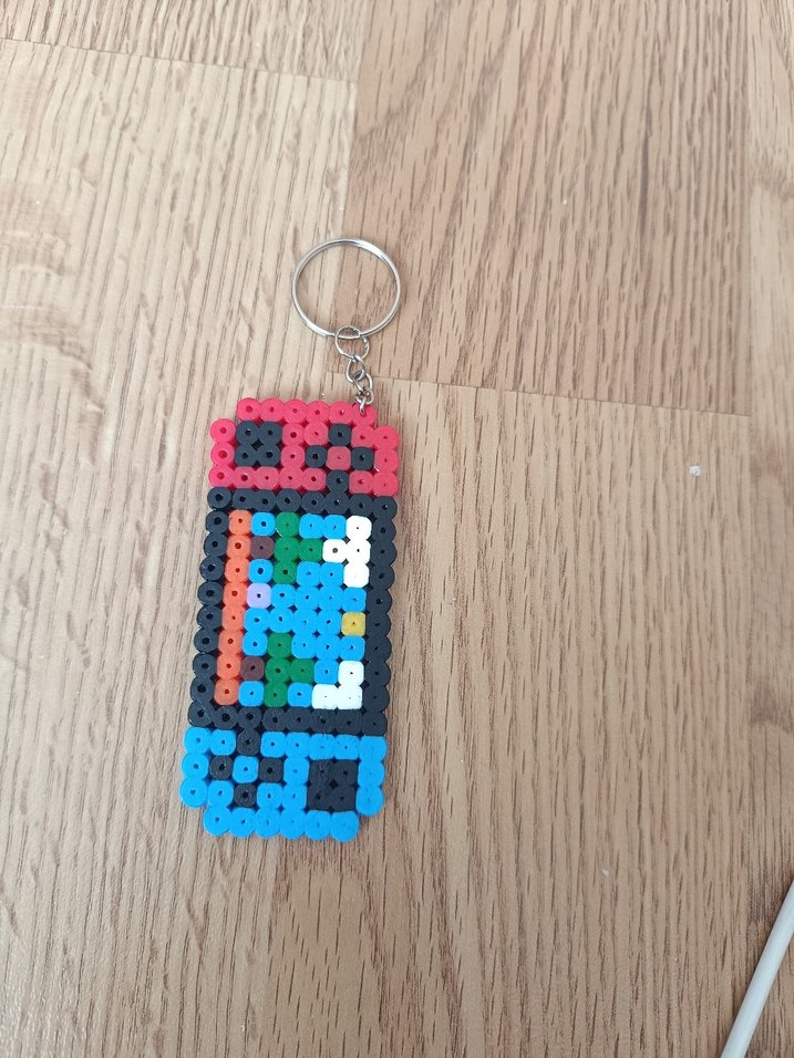 Renkli boncuklarla yapılmış, pop kültür esintili minimalist ve retro tarzda kadın anahtarlık. Bohem ve hippie stillerine uygundur.