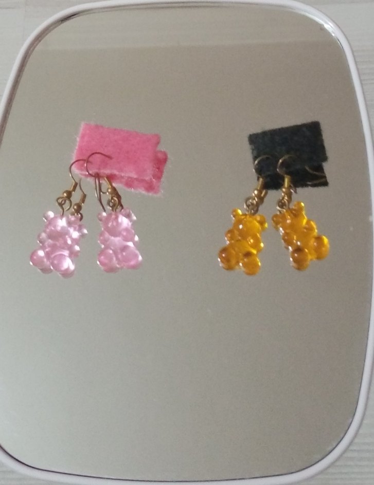 Pembe ve sarı renkli boncuklardan oluşan mini küpeler, parti için uygun retro tarzda eğlenceli bir tasarıma sahiptir.