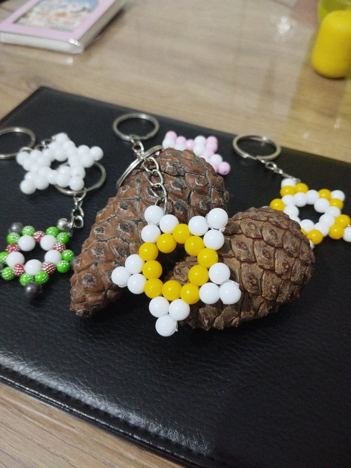 Boncuklardan yapılmış renkli, bohem tarzda yıldız şekilli anahtarlıklar. Anahtarlarınıza rahat ve retro bir dokunuş katar.