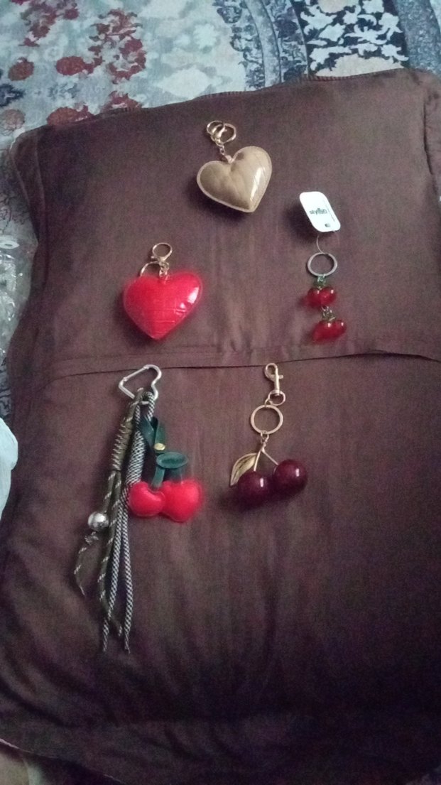 Kalp ve kiraz figürlü, kırmızı ve altın tonlarında renkli boncuklu bohem tarzda anahtarlıklar. Vintage retro görünüm için uygun. tekli fiyatıdır lütfen almak istediğinize ilan açtırin