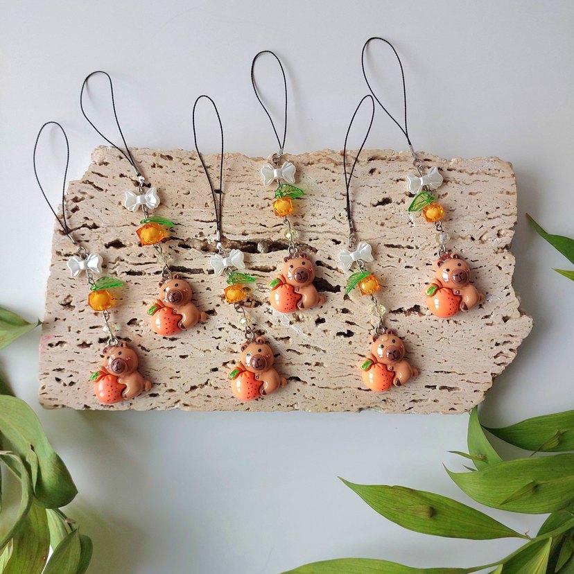 Renkli bohem tarzında, boncuk detaylı ve turuncu aksanlı sevimli ayıcık figürlü günlük kullanım için charm. tane fiyat 30
