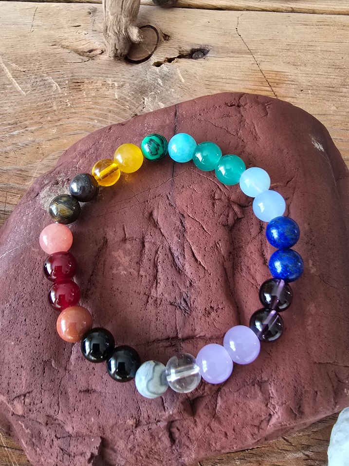 7 çakra bileklik.Çok renkli boncuklardan oluşan, koyu tonlarda ve batik desenli bohem tarzı bileklik. Günlük kullanıma uygundur. kd11825