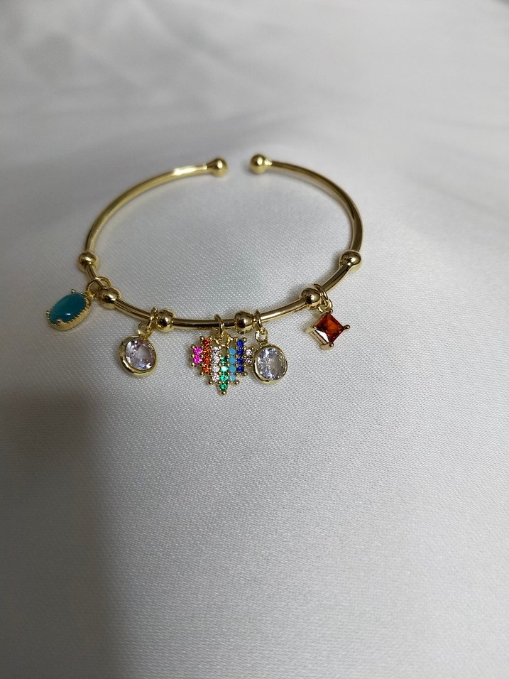 Altın renkli, çeşitli boncuklu ve figürlü renkli bohem tarzda bileklik, günlük kullanım için uygundur.