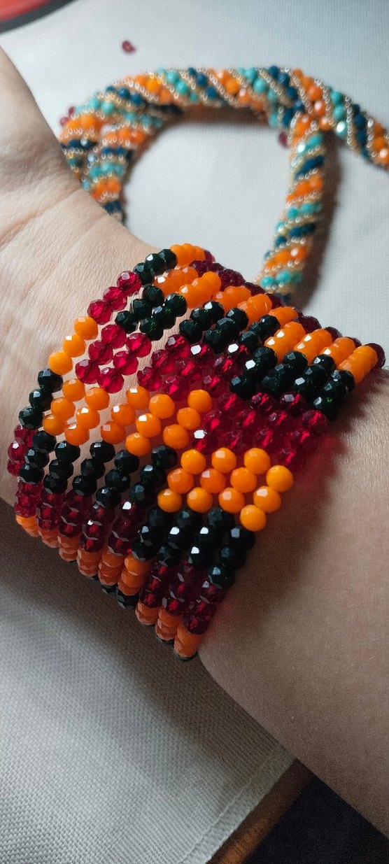 Partiler için uygun, desenli ve renkli boncuklardan oluşan bohem tarzda bileklik. Canlı ve dikkat çekici aksesuar. ✨