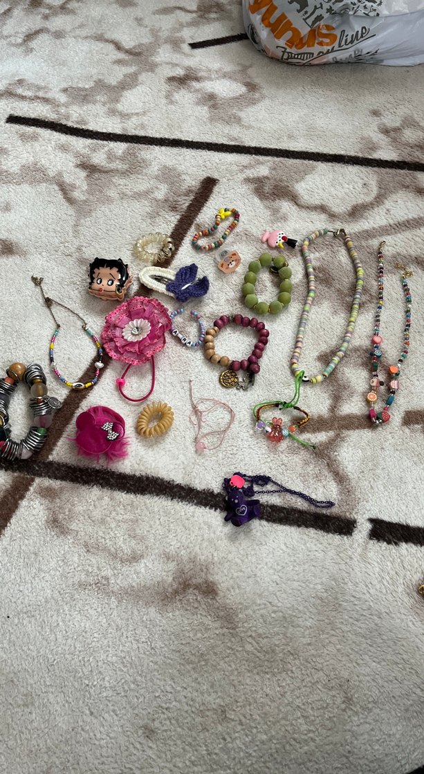 Bohem, hippie ve retro tarzda renkli boncuklu çocuk saç aksesuarları. Desenli saç bantları ve tokalar içerir.