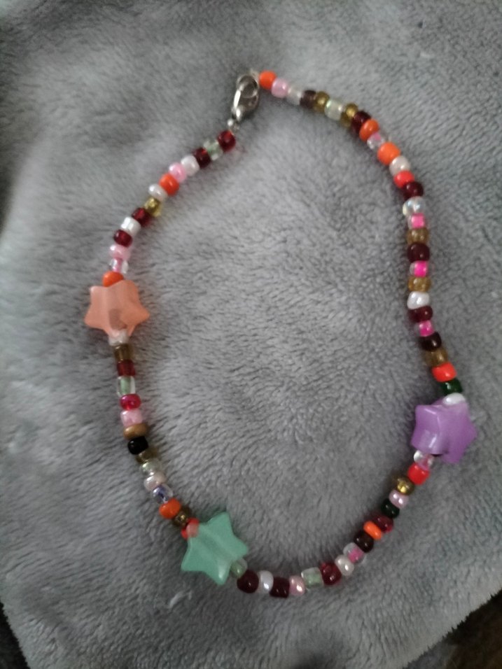 Renkli boncuklar ve yıldız detaylarıyla bohem tarzda halhalı. Normal midi uzunlukta, bağlama deseni ile günlük kullanıma uygun.