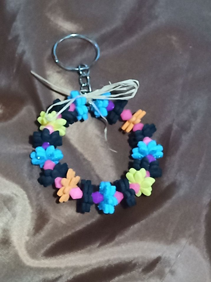 çiçek desenli hediyelik anahtarlık çeşitleri toplu alımda çok indirim vardır. Canlı renklerde çiçek şeklinde boncuklardan oluşan, metal halka ile bohem tarzda anahtarlık. Anahtarlarınıza retro bir dokunuş katar.