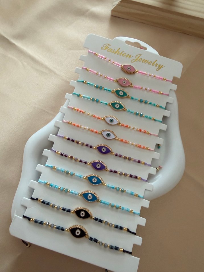 Renkli boncuklarla işlenmiş göz motifli, bohem tarzda günlük kullanıma uygun bileklikler. 5 adet 120 tl