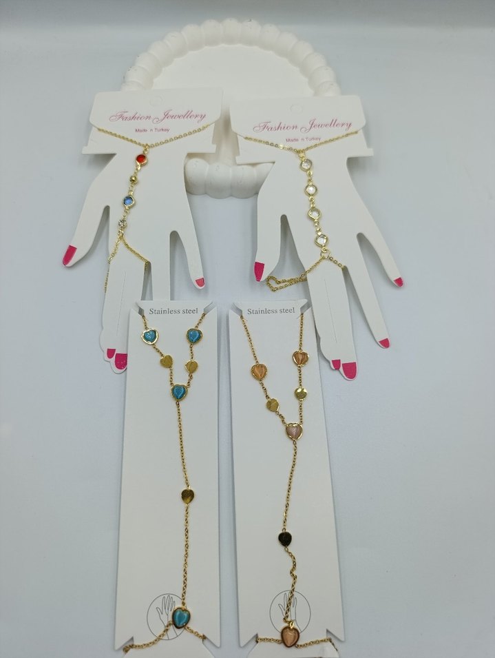 Çeşitli renklerde boncuklu bohem kadın el zincirleri, ince nakış desenleriyle günlük kullanıma uygun. Dayanıklı paslanmaz çelikten üretilmiştir. ✨
