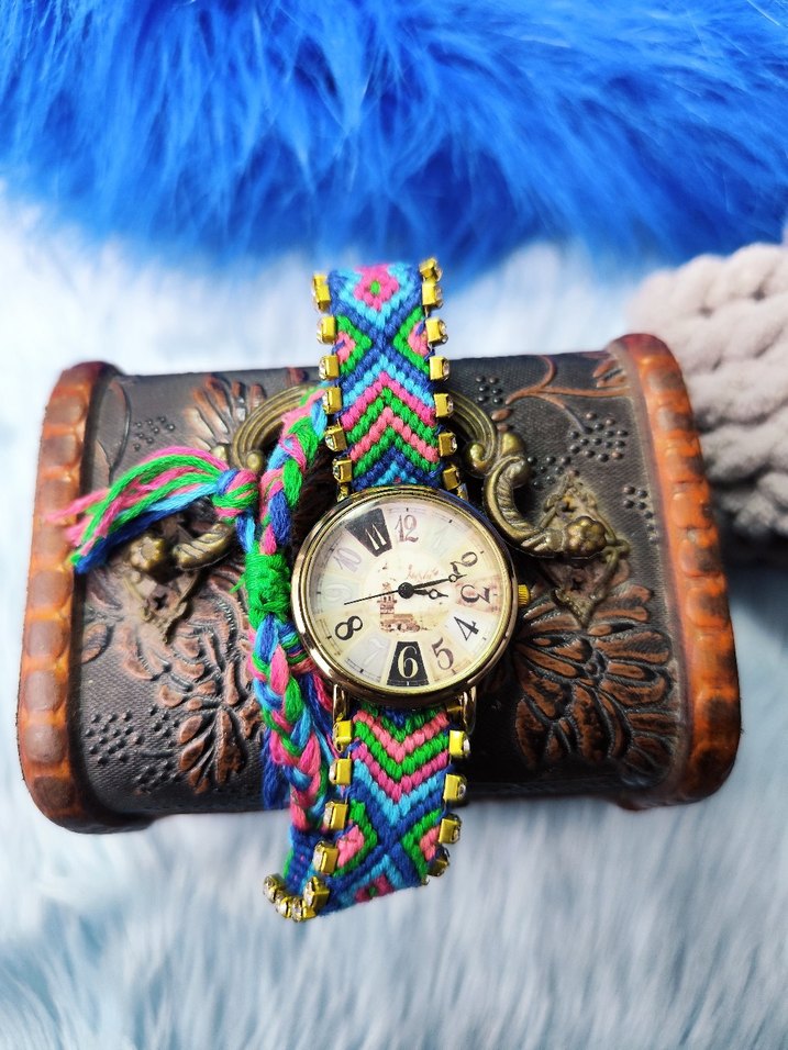 Renkli boncuklu kayışı ve yuvarlak kadranıyla bohem tarzda kadın kol saati. ⌚ 3 ATM Su geçirmezlik stainless steel kararmaz çelik kasa