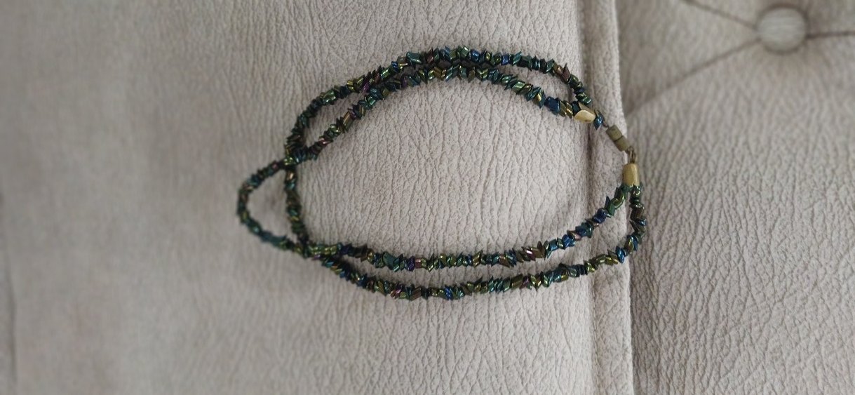 Kadınlar için renkli boncuklardan oluşan, bohem tarzda günlük kullanıma uygun kolye. Nakış desenli, retro ve hippie havası taşır.