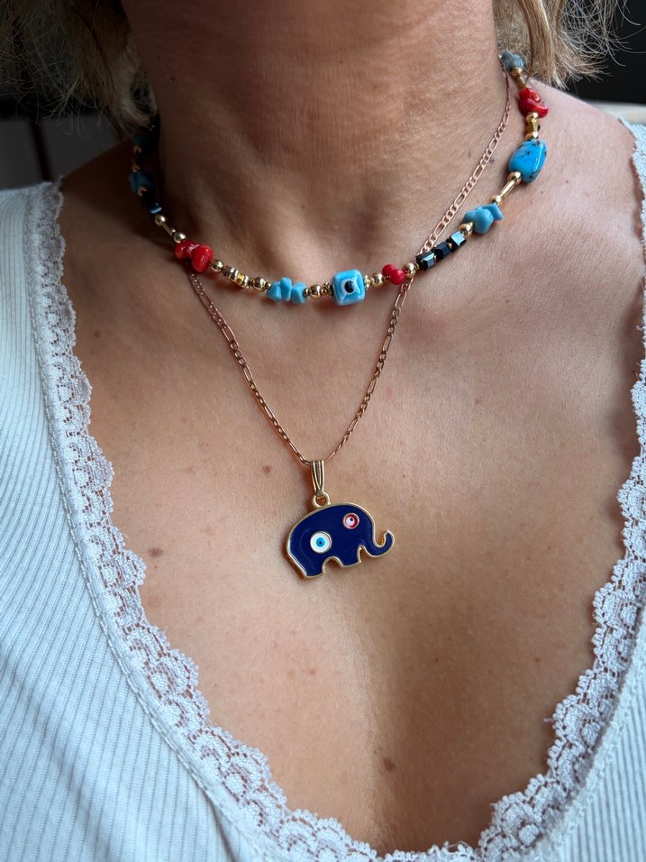 Kısa uzunlukta, renkli boncuklardan oluşan etnik desenli bohem kadın kolye. Gorsel amacli bi kere takildi sadece. Kararmaz.