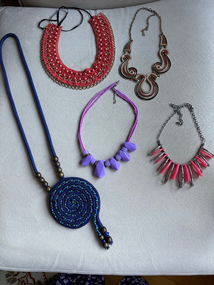 Hepsi 250 lira Renkli ve işlemeli kolyeler Herbiri 50 lira istediğinizi de ayrıca alabilirsiniz