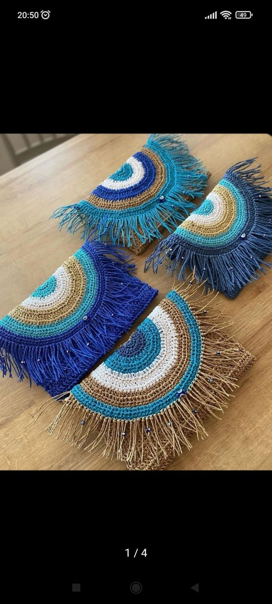 Nakışlı desenler ve boncuk detaylı, renkli bohem tarzda örgü kumaştan yapılmış püsküllü kadın portföy çanta. Günlük kullanıma uygundur.