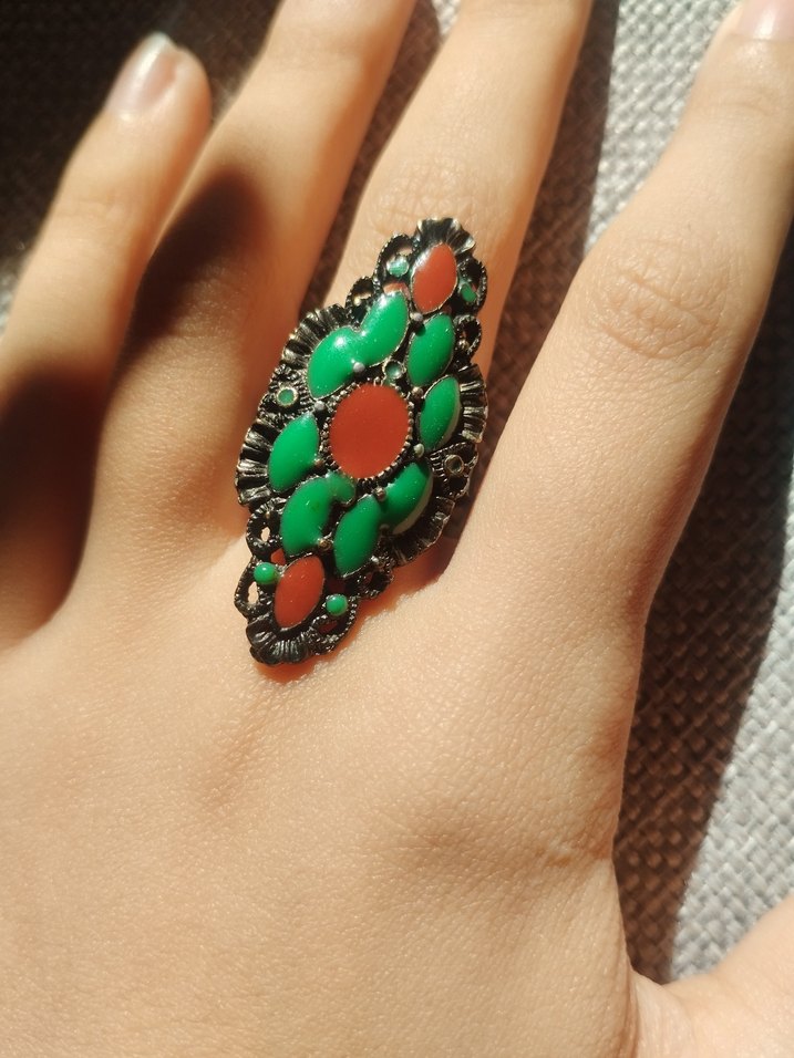 Bu bohem tarzı kadın yüzük, renkli turkuaz ve mercan boncuklarla desenli olarak tasarlanmıştır, günlük kullanım için uygundur.