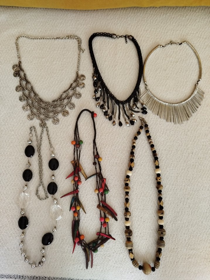 Renkli boncuklar ve etnik desenlerle süslenmiş, günlük kullanıma uygun normal midi uzunlukta bohem tarzda kolye.