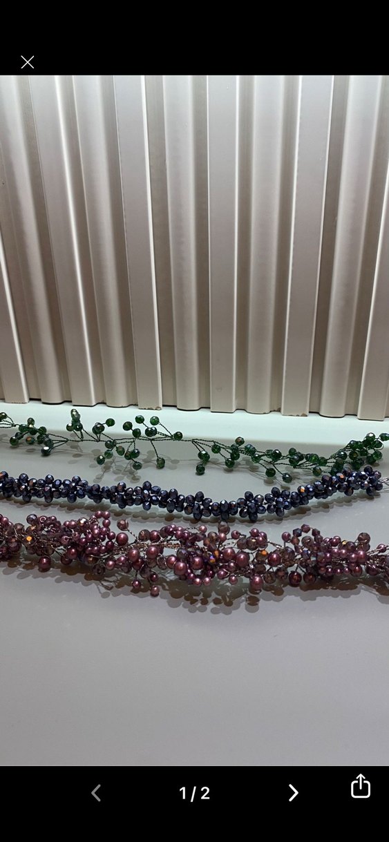 Camdan yapılmış, koyu renkli çok renkli boncuklarla süslenmiş bohem ve göz alıcı saç aksesuarları. Retro ve hippie tarzlara uygundur.