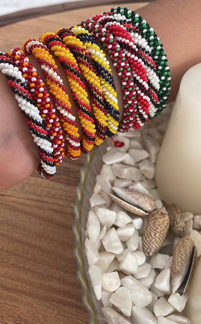 El yapımı Renkli boncuklarla yapılmış, yılan desenli bohem tarzda günlük kullanıma uygun bileklikler. Hippie ve retro stil için ideal.