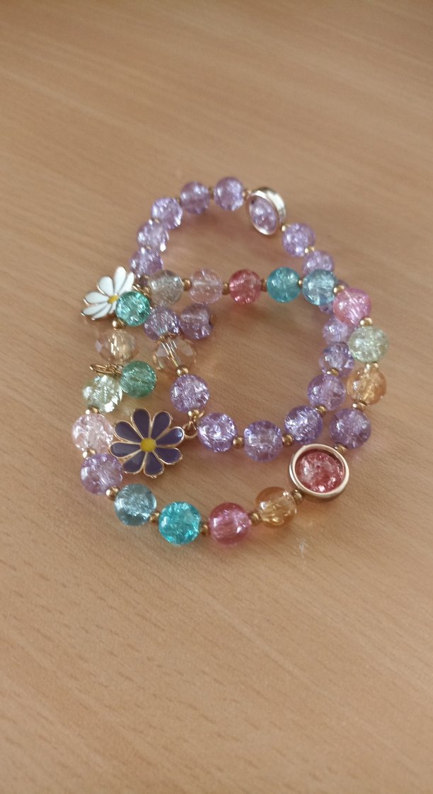 Renkli boncuklar ve çiçek figürlü detaylarla bohem tarzda günlük kullanıma uygun bileklik.