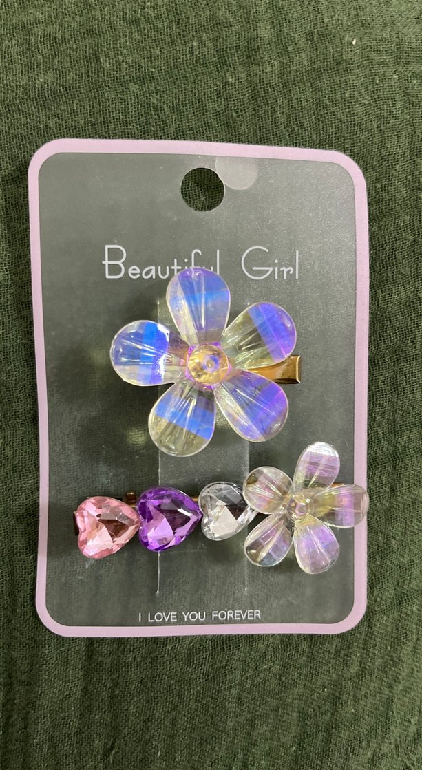 Sıfır üründür, hiç kullanılmadı. Çiçekli renkli çok tatlı bir toka seti