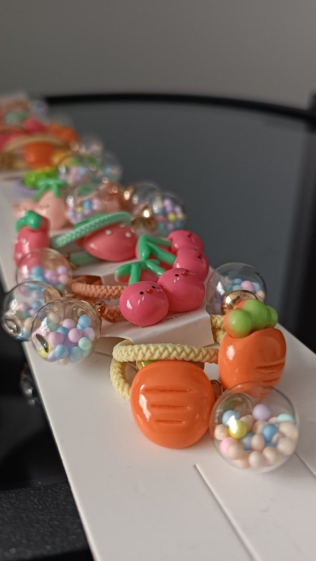 Kiraz ve havuç şeklinde boncuklarla süslenmiş renkli çocuk saç tokaları, bohem ve retro tarz için uygun. çifti 50₺