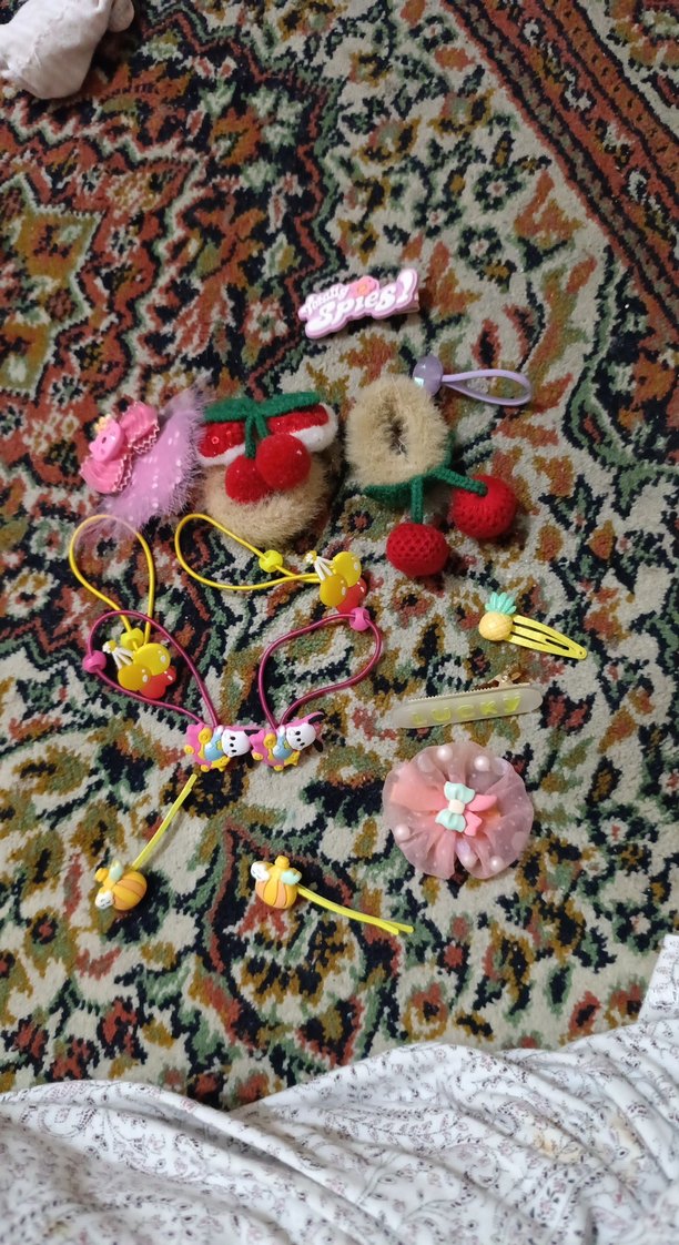 Boncuklu ve nakışlı, bohem ve retro tarzda renkli çocuk saç tokaları ve bantları.