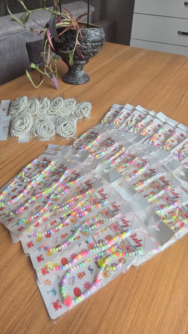 Renkli boncuklu, baskılı desenlere sahip çocuk takıları. Bohem, hippie ve retro tarzını yansıtan çok renkli ve canlı tasarımlar. adet fiyatıdır toplu alımlarda yardımcı olunur