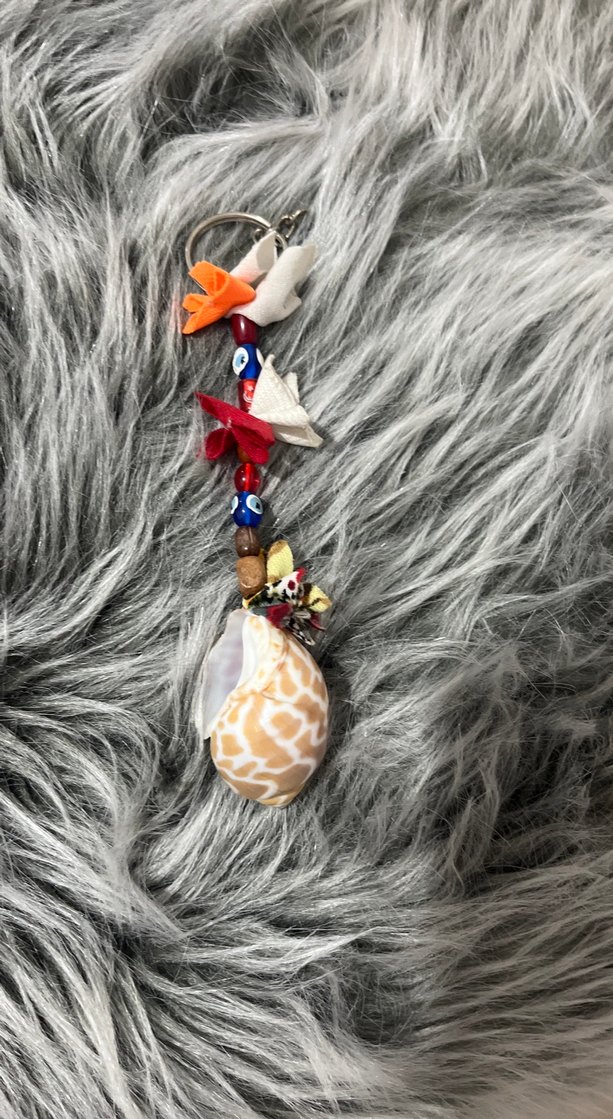 Deniz kabuklu ve boncuklu renkli bohem anahtarlık.