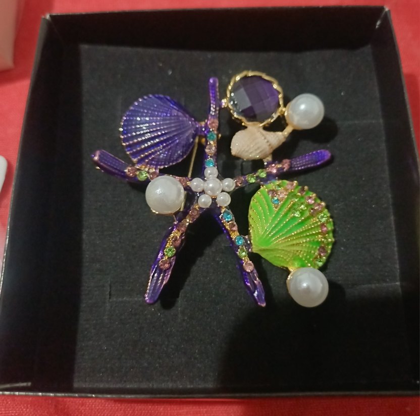 Deniz kabuğu ve inci detaylı, renkli boncuklu broş. Parti kıyafetlerine bohem dokunuş katar. Nakışlı ve avangart tarzda.