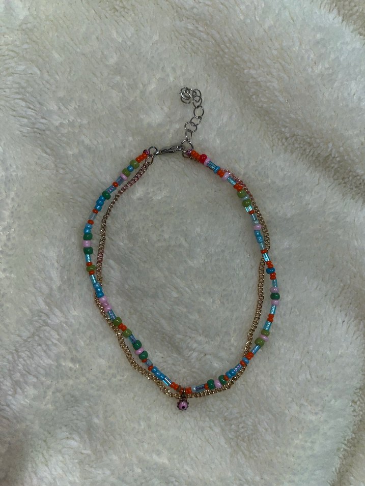Pastel tonlarda boncuklar ve ince zincirden oluşan k, bohem tarzda renkli Halhal.