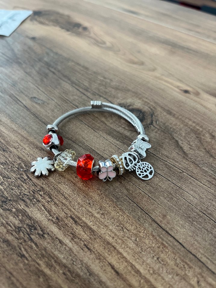 Renkli boncuklar ve çiçek desenleriyle süslenmiş, günlük kullanıma uygun bohem tarzda kadın bileklik.