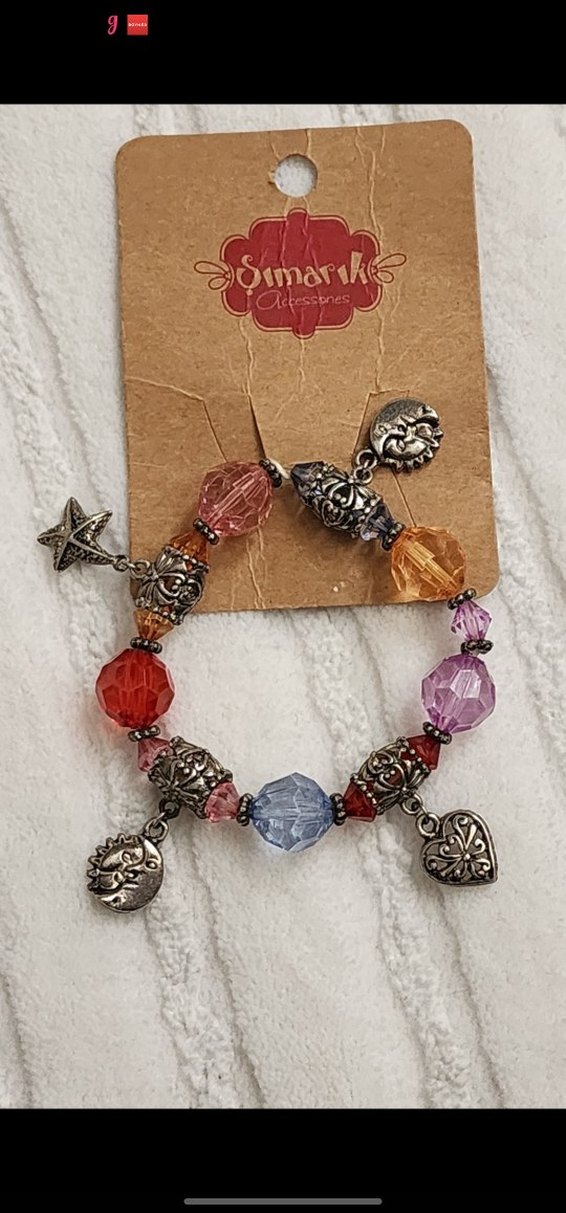 Renkli Boncuklu çeşitli figürlerle süslenmiş kadın bileklik. Romantik akşamlar için uygun.