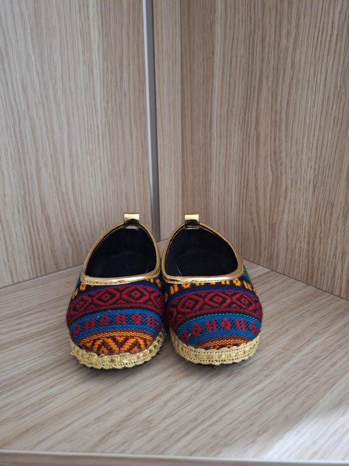 Sentetik kumaştan yapılmış, renkli bağlama desenli ve boncuk detaylı kadın espadril dolgu topuklu ayakkabı. Günlük kullanım için uygundur.