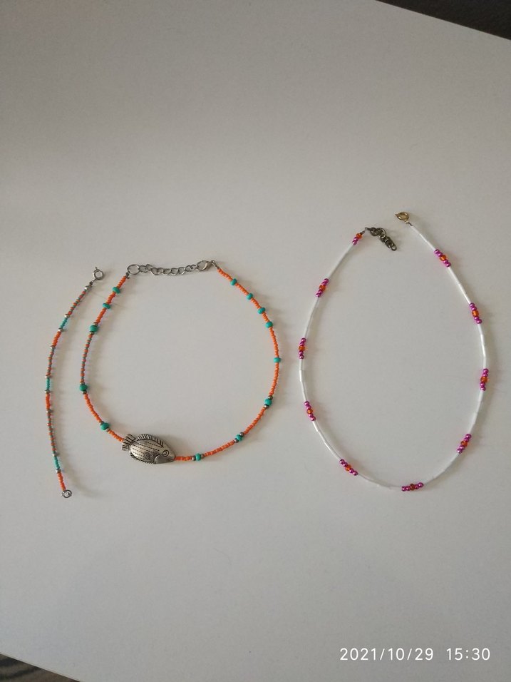 Çok az kullanılmış temiz ve hasarsız ürünler. Renkli boncuklardan oluşan kısa bohem tarzda kadın kolyesi seti. Yılan desenli ve deniz kabuğu detaylı, günlük kullanıma uygundur.