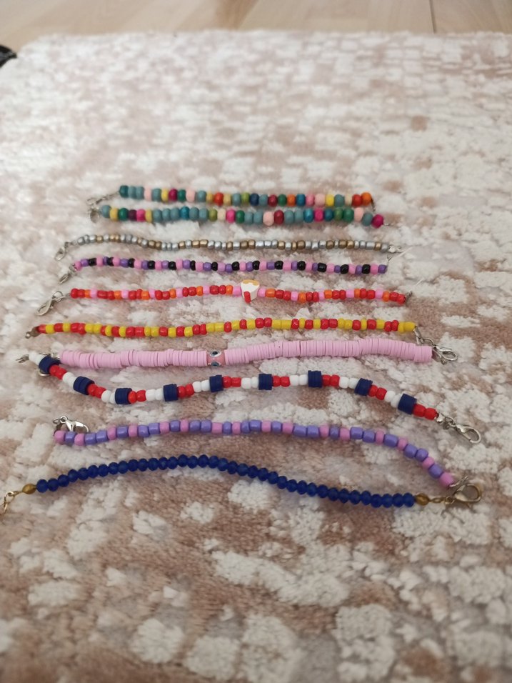 Renkli boncuklardan oluşan, bağlama desenli ve kadın ve çocuk bileklikleri, günlük kullanım için uygundur.el yapımı su değince hasar almaz fakat tuzlu su ve detarjana değince rengi beyazlaşabilir. Siz istediginizi söylüyorsunuz ben satışa çıkarıyorum siz aliyorsunuz.30-35 TL arası degisiyo