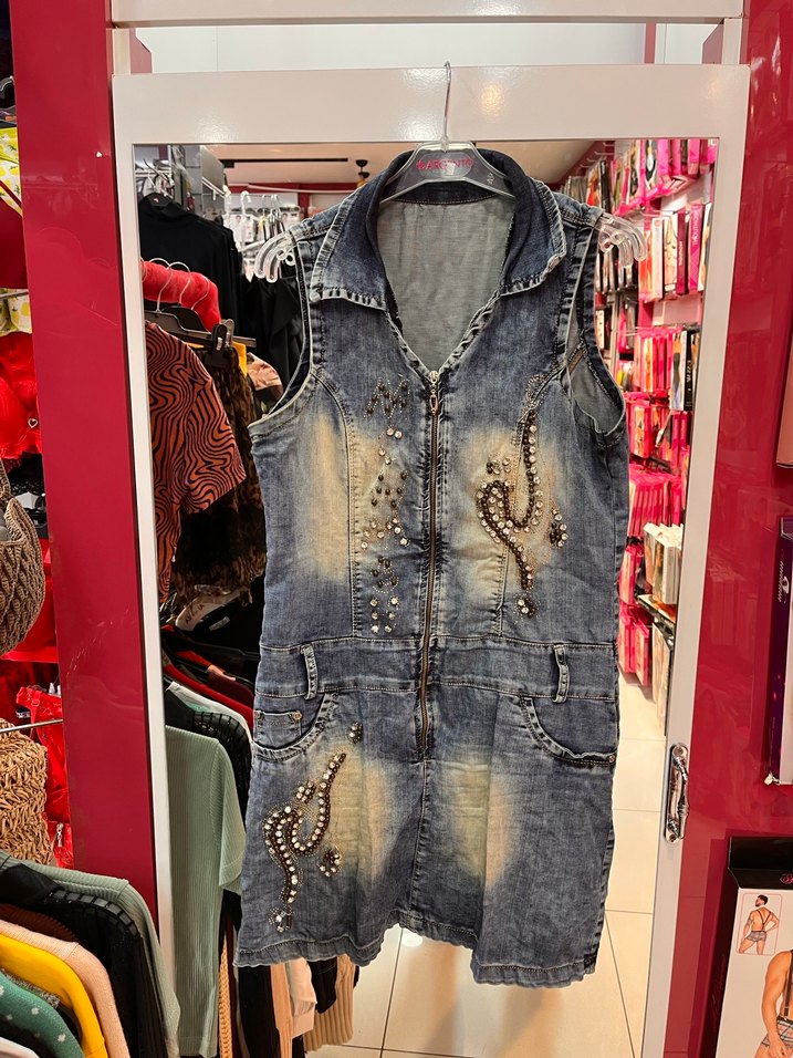 Renkli boncuklu Kolsuz Mini Denim elbise