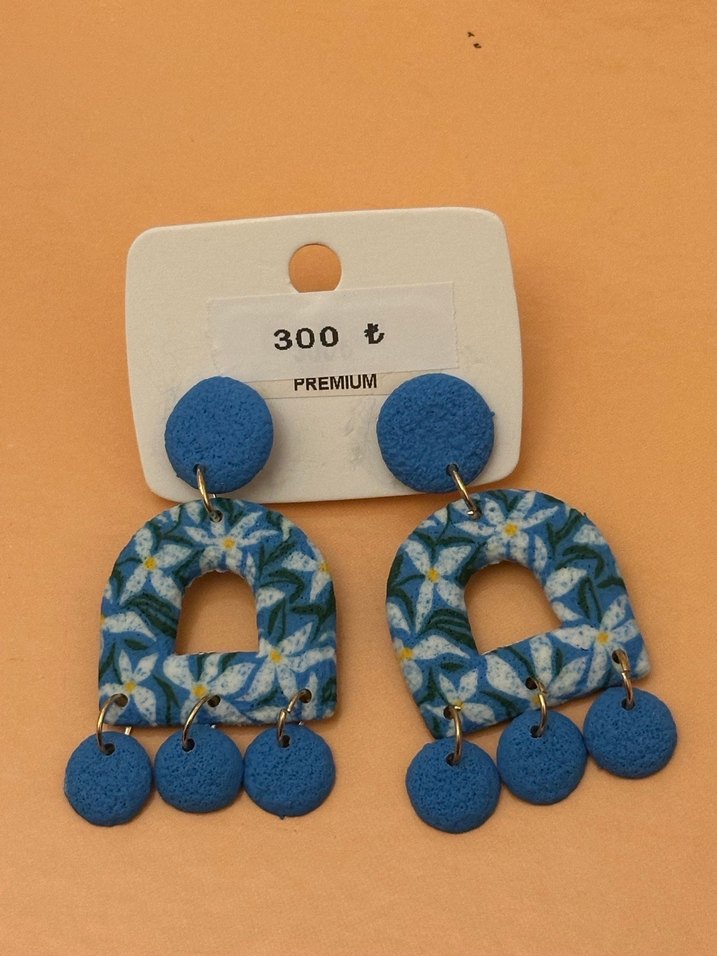 Kısa boy, çiçek desenli ve renkli boncuk detaylı bohem tarzda gündelik kullanıma uygun küpe.