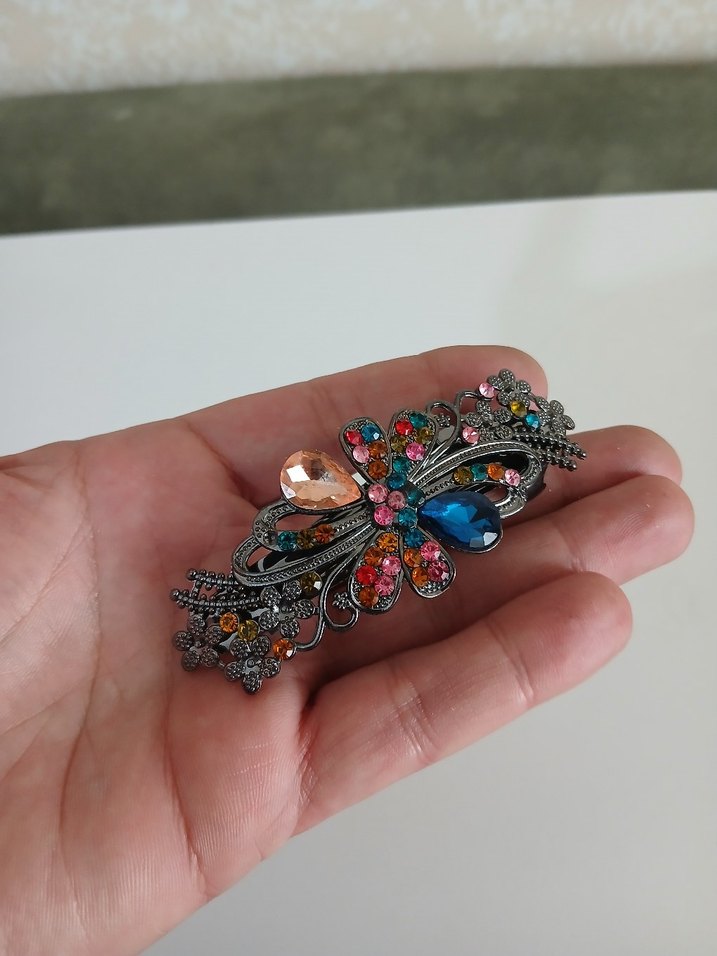 Renkli Boncuklu Metal Kelebek Saç Tokası