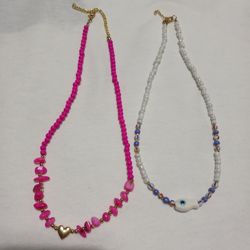 Renkli boncuklardan oluşan kısa uzunlukta, bohem tarzda mini kolyeler. Günlük kullanım için uygun, hippie ve retro havasında.