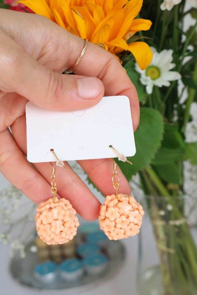 Bej renkli, renkli boncuklardan oluşan kısa uzunlukta bohem tarzı küpeler, minimalist ve sade stiller için uygun, düğünlerde kullanılabilir.