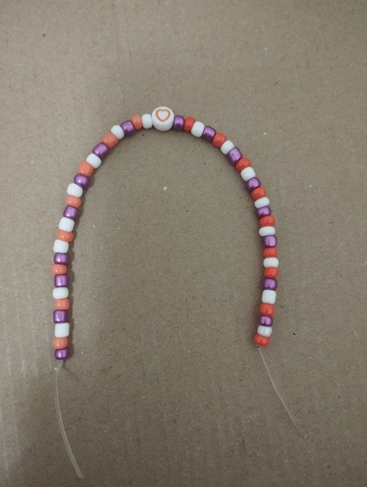 Pastel tonlarda çok renkli boncuklardan oluşan, kalp detaylı, minimal tarzda bileklik.