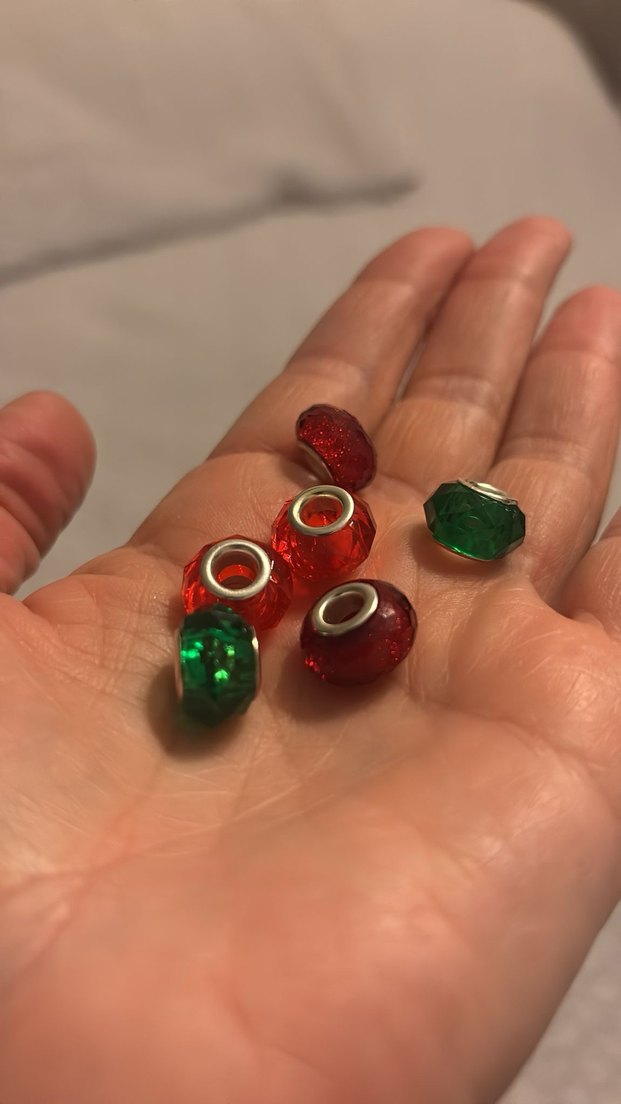 Parti için bohem tarzda, renkli kırmızı ve yeşil boncuklu kadın charm. Minimalist ve modaya uygun.