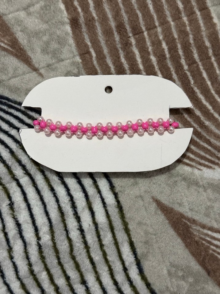 Renkli pembe boncuk işlemeli bileklik, bohem ve retro tarzları yansıtır. Minimalist ve karşı kültür etkileriyle günlük kullanıma uygundur.