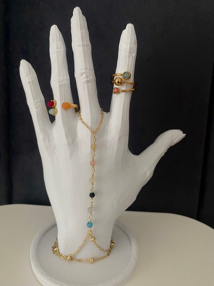 Hafif çok renkli boncuk detaylı, bohem tarzda Şahmeran . İnce altın zincir ve renkli boncuklarla günlük kullanıma uygun. ✨