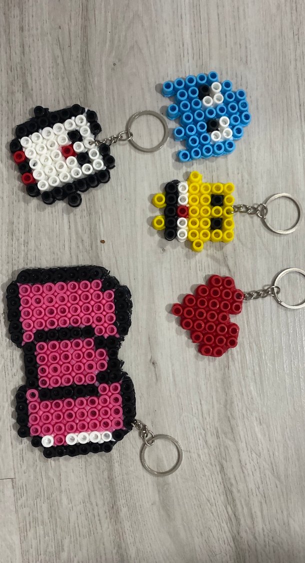 Renkli boncuklardan yapılmış, minimalist tarzda pop kültür temalı çeşitli eğlenceli anahtarlıklar. ️