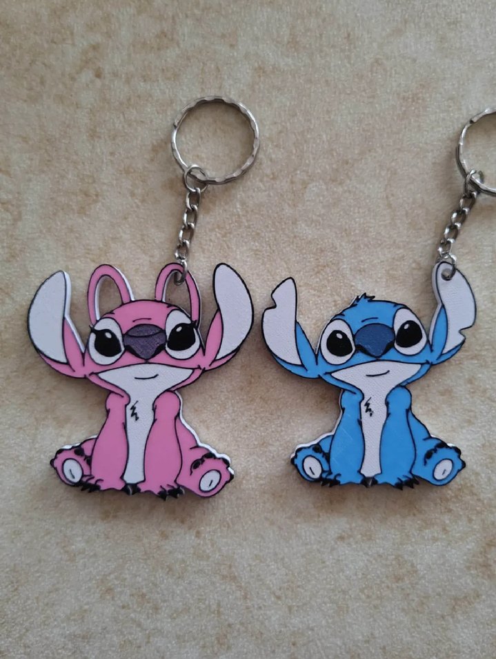 Pembe ve mavi pop kültür karakterlerinden oluşan renkli boncuklu anahtarlıklar, rahat ve sade bir tarzda tasarlanmıştır.