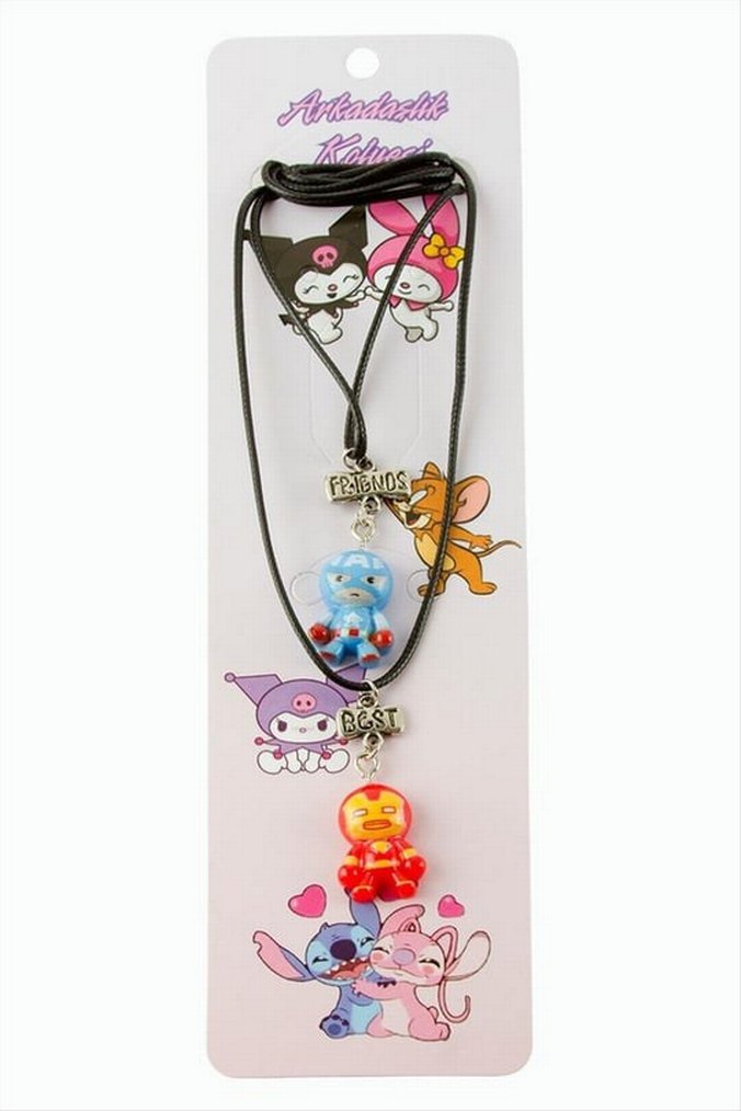 Renkli boncuklu, gotik tarzda nakışlı figürler ve siyah kordona sahip rock punk tarzı çocuk kolyesi. FRABNDS detayı mevcuttur.