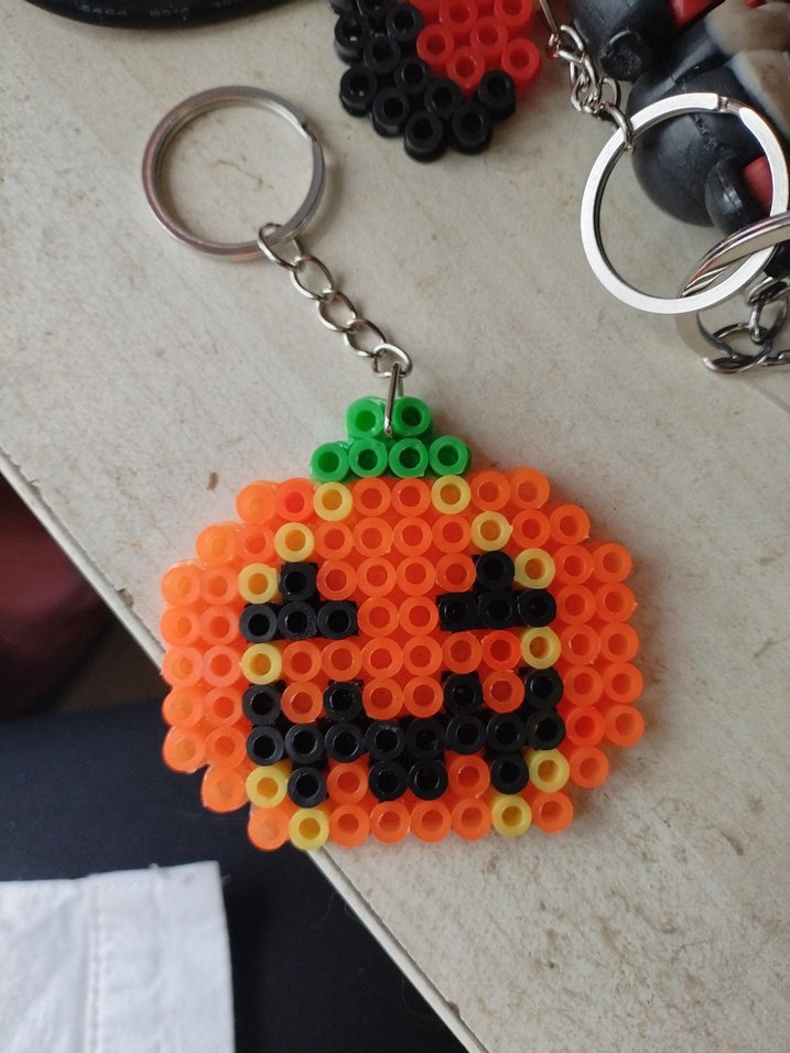 Canlı turuncu ve yeşil boncuklardan yapılmış, rock punk tarzında renkli boncuklu kabak şekilli anahtarlık. İster tek ister toplu satışım mevcuttur.