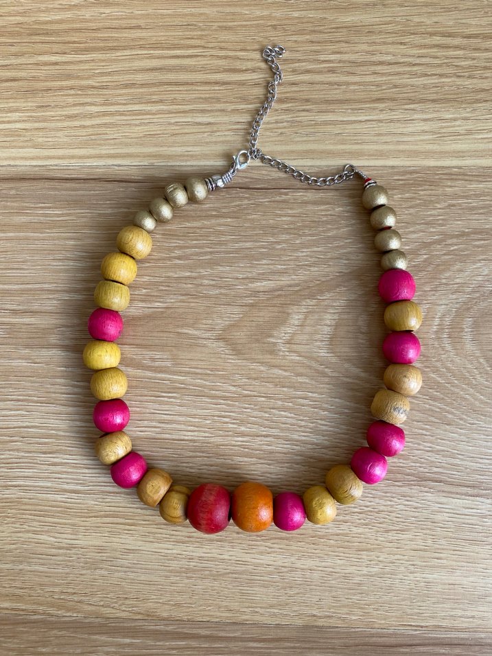 Renkli ahşap boncuklardan oluşan uzun, bohem tarzda kadın kolyesi, günlük kullanım için uygundur.